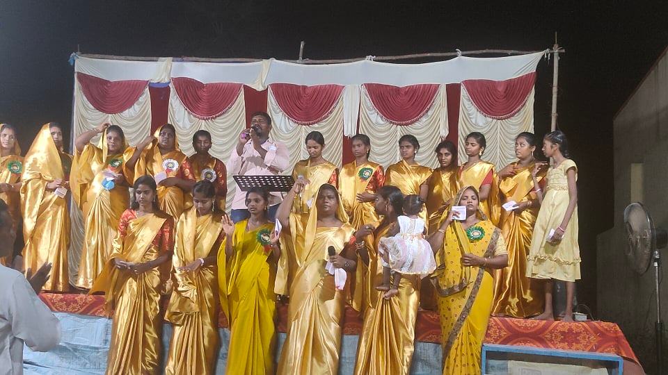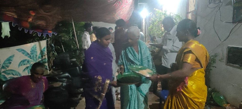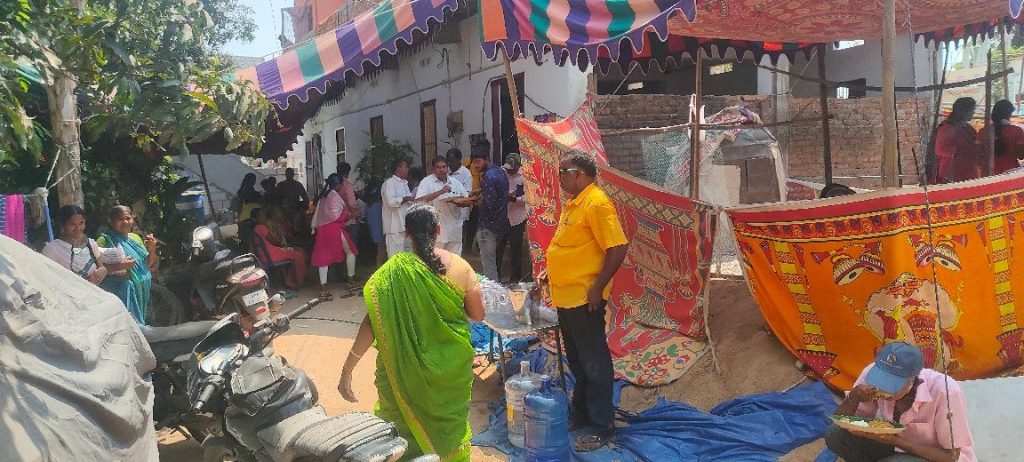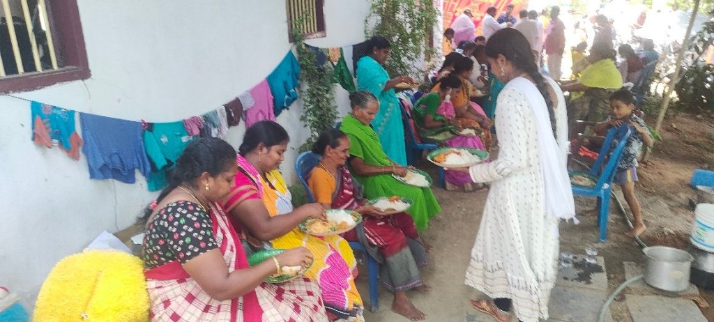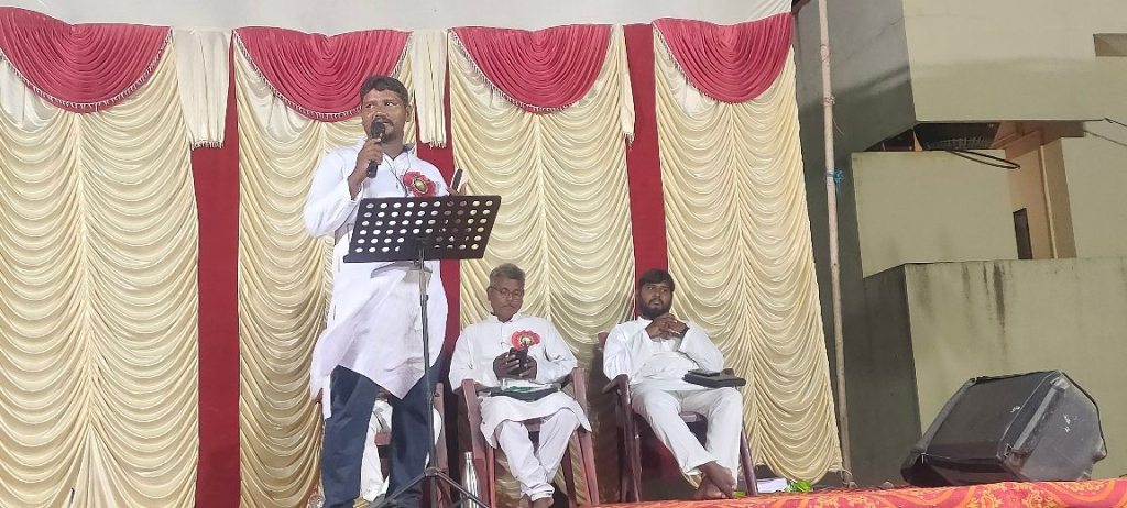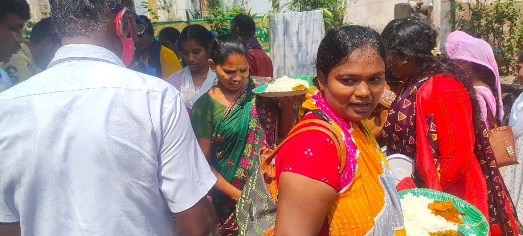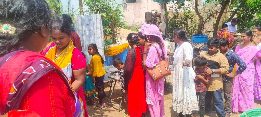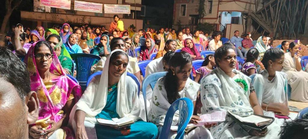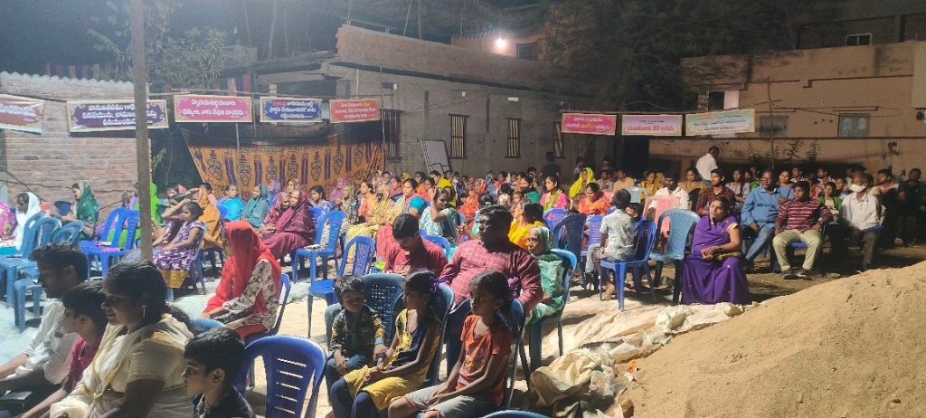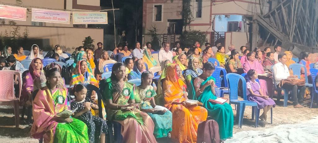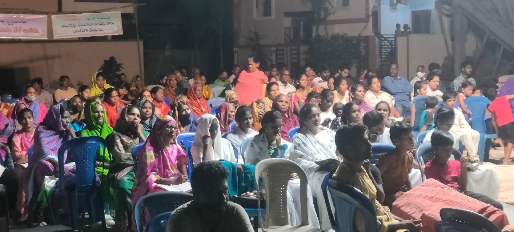 Les gens arrivent par centaines, nous avons commencé par leur servir un repas, puis invité à venir écouter l’évangile, au cours de cette soirée beaucoup de personnes ont été touchées par le message du salut annoncé par le pasteur Nagarjuna.